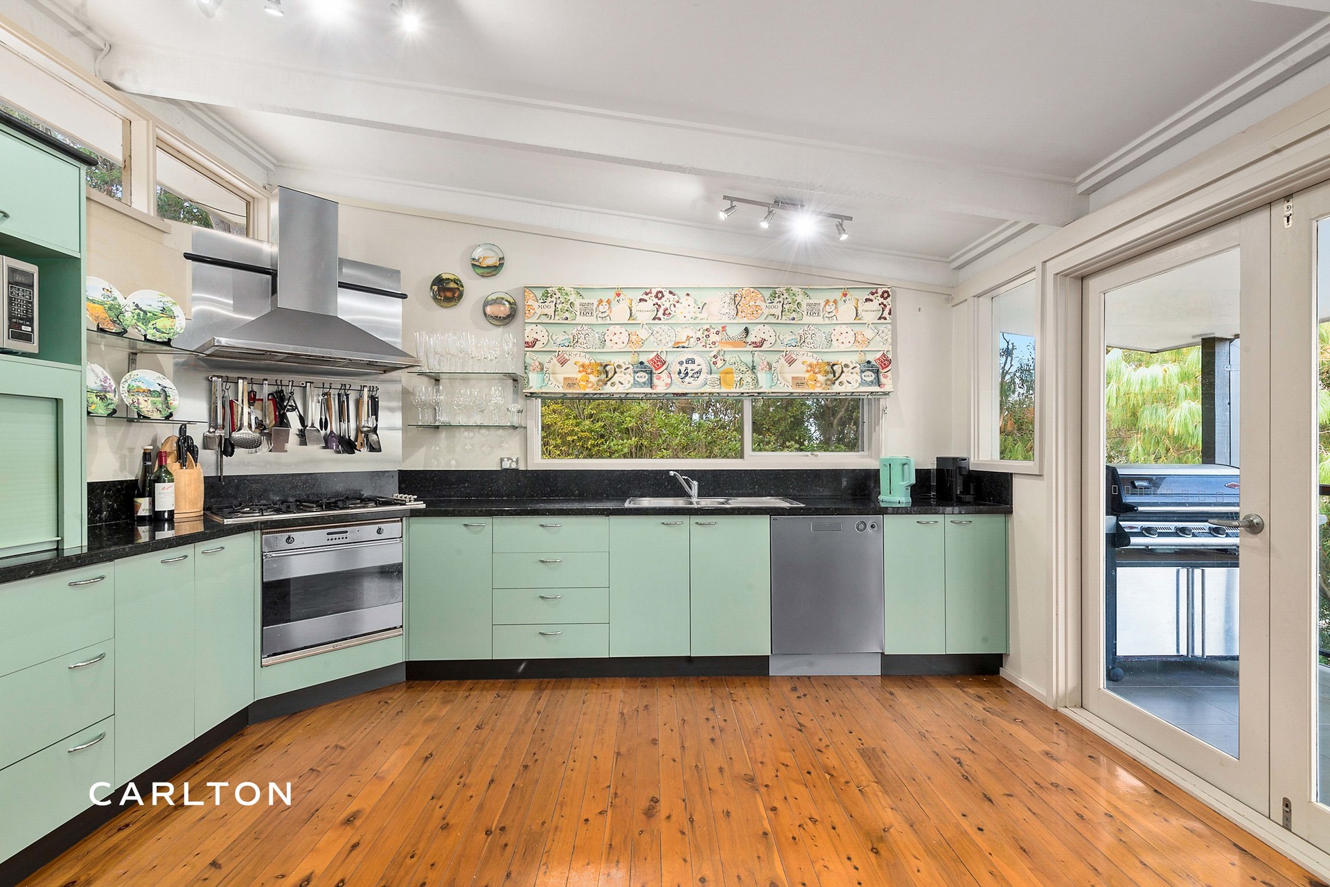 - Modern kitchen with granite bench tops, Smeg oven and 5 burner gas cooktop, pantry, appliance cupboard and D/W.